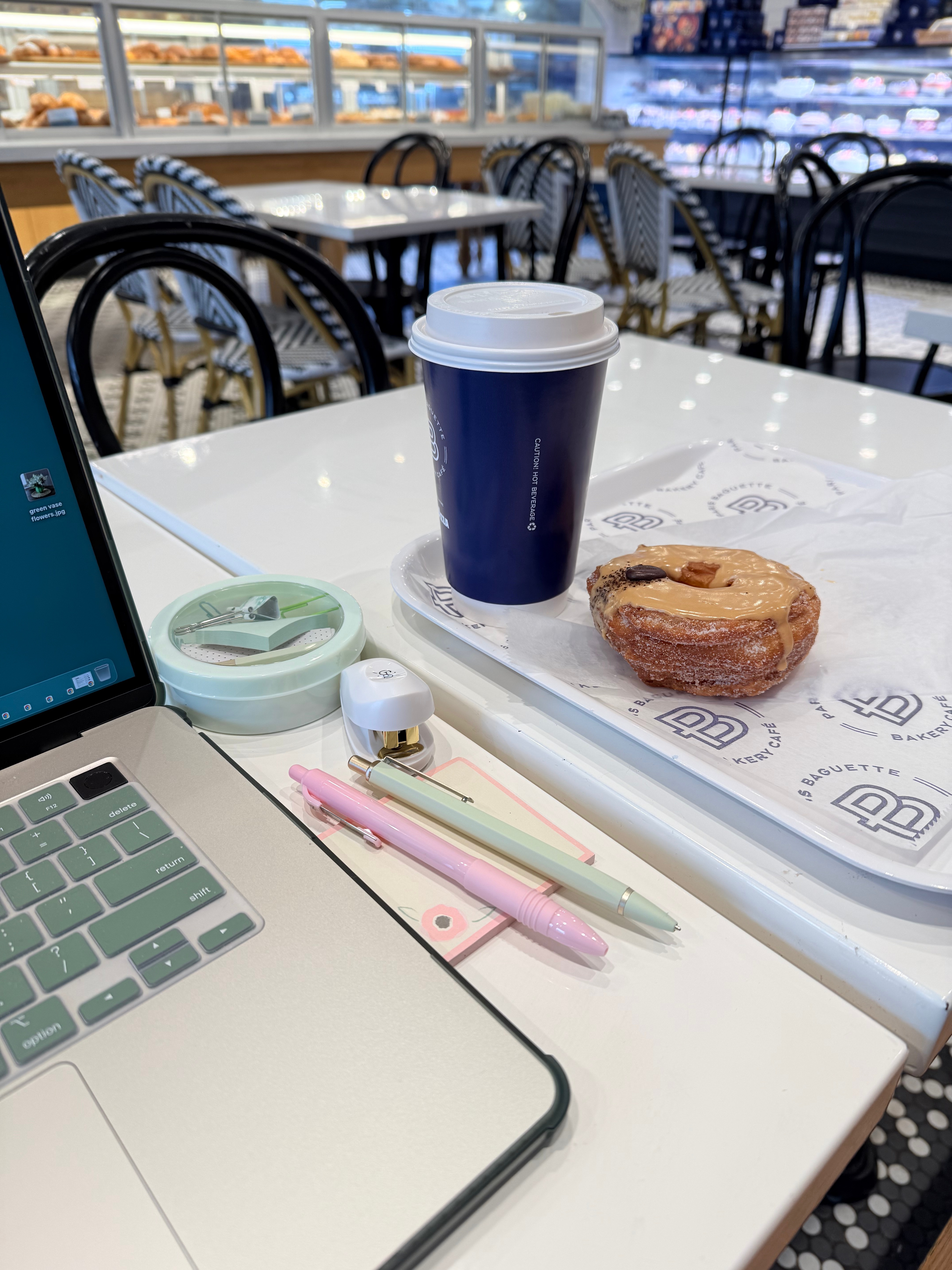 I selected a pastry, ordered a drink, and sat down at a smooth white table to get started.